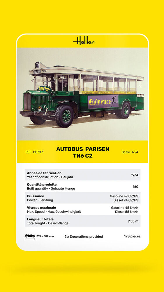 It was in the early thirties, after the Paris and suburban trams had been removed from service, that the first buses of the „TN“ series were built. The progress that had been made by the automobile industry, especially in the field of tyres, made it possible to design buses which could seat fifty people or more. The buses of the „TN“ series were equipped with 4-cylinder engines of 58 HP (TN.4) and 6-cylinder engines of 94 HP (TN.6 family). The TN.4A was used on short and medium runs in flat areas, whilst the more powerful TN.6 was used on the long suburban runs and on the very hilly lines such as Montmartre, Ménilmontant and Belleville. The TN.6A and the TN.6C were identical in appearance, the only discernable difference being in the wheels, which had rims with solid centres on the TN.6A, whilst the TN.6C had removable rims, called „artillery rims“. The enormous flexibility of use of the TN.6C was legendary among drivers. During the war, these buses were equipped with a coal-burning gas generating system, either Imber or Gohin--Panhard. After the war, the main modification made on the TN.6s was the enclosing of the driver‘s cab, so as to allow him a minimum of comfort during the winter months. Replacement of the „TN“ buses was begun in 1960, and the lastone was withdrawn in 1969, thirty eight years after the first one was put into service.