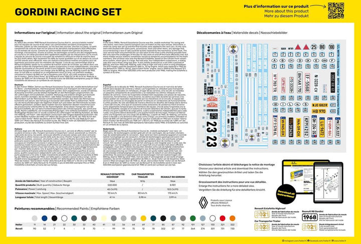 Au début des années 1980 Renault Assistance Course était le „service d‘atelier mobile“ pour les équipes de course et de rallye. Les camionnettes servaient à transporter les véhicules, placés sur des remorques, sur les lieux des courses. Une fois sur place, un petit campement de voitures était mis en place et les dernières manipulations était effectuées sur les bolides de course. Comme les camionnettes étaient bien garnies de pièces de rechange, d‘accessoires, d‘outils et autres, les dommages survenus lors des engagements en course ou en rallye pouvaient être rapidement réparés par les mécaniciens sur le circuit. L‘équipe du service de course s‘occupait de remettre le véhicule en état de marche dans les plus brefs délais. Non seulement les défis du travail quotidien sur et en dehors du circuit ont été relevés avec efficacité, mais ces stations d‘assistance mobiles ont parfois servi de logements provisoires pour les membres de l‘équipe. L‘une de ces camionnettes était la Renault Estafette, basée sur le système de traction avant de la Citroën, qui offrait donc une grande surface de chargement plate, quatre suspensions à roues indépendantes, une porte latérale coulissante et une porte arrière à trois battants. Celle-ci a d‘abord été produite en tant que fourgonnette avec une charge utile de 800 kg, puis de 1000 kg à partir de 1965, avec un toit plat ou surélevé et un empattement court ou long. Les premiers modèles utilisaient le moteur de 845 cm³ de la Dauphine avec 32 ch, qui a été remplacé en 1962 par le moteur „Sierra Cléon fonte“ de la Renault 8 avec 1108 cm³ et 45 ch et en 1968 par le moteur de 1289 cm³ de la Renault 12. Produite à plus de 500.000 exemplaires jusqu‘en 1980, l‘Estafette est devenue un symbole de son époque.