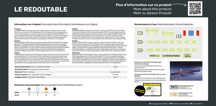 Die REDOUTABLE (S 611), das erste französische Atom-U-Boot, im März 1967 vom Stapel gelaufen, 1971 in Dienst gestellt, 1991 außer Dienst gestellt, ist inzwischen das größte öffentlich ausgestellte Museums-U-Boot der Welt. Der Rumpf ist aus hoch elastischem Stahl, was Tauchtiefen von mehr als 200 m erlaubt. Das Boot wird durch einem KK-Reaktor mit bereichertem Uran und Naturwasser unter Druck angetrieben. Die Bewaffnung umfasst 16 Raketen, die mit der US-Polaris vergleichbar sind, sowie 4 Torpedorohre.